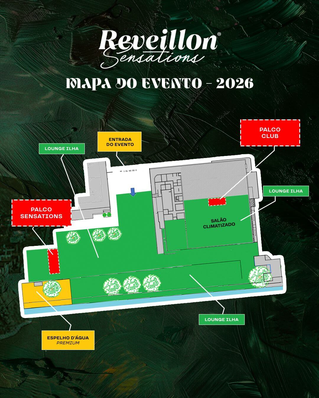 No Réveillon do Ilha, unimos sensações, emoções em um cenário privilegiado, com vistas deslumbrantes da área verde do clube Alvares Cabral.